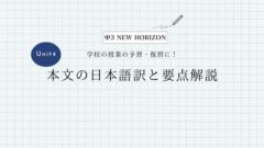 東京書籍 中学1年生 NEW HORIZON(ニューホライズン) Unit4 Part1の本文の日本語訳と重要箇所の解説です。